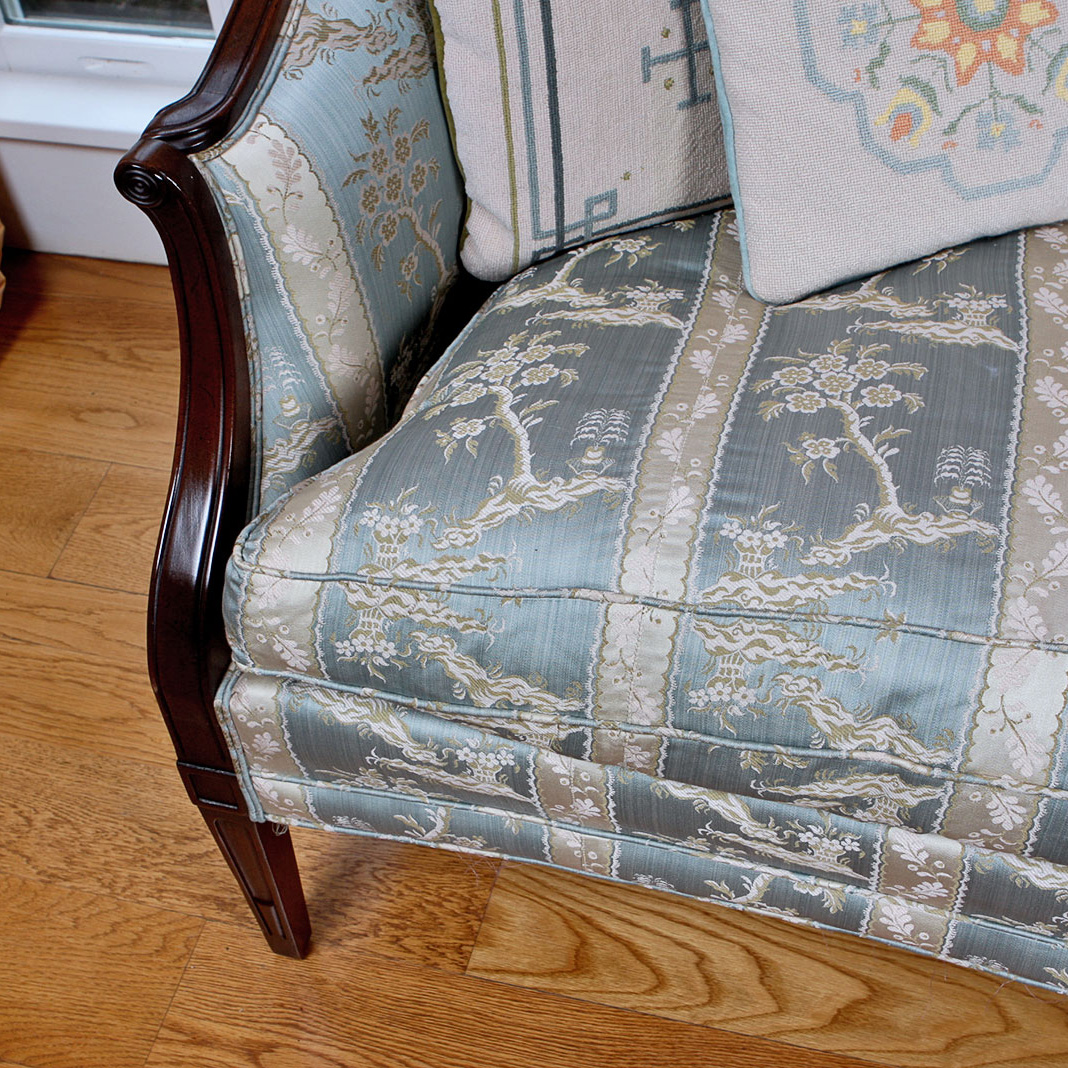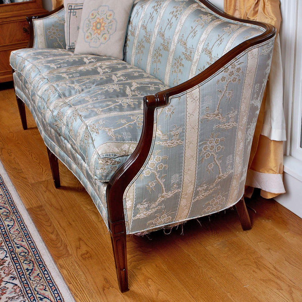 Fabric Appropriate For A Camel Back Sofa With Rolled Arms - Sofas with wooden arms are best for a living room or office.