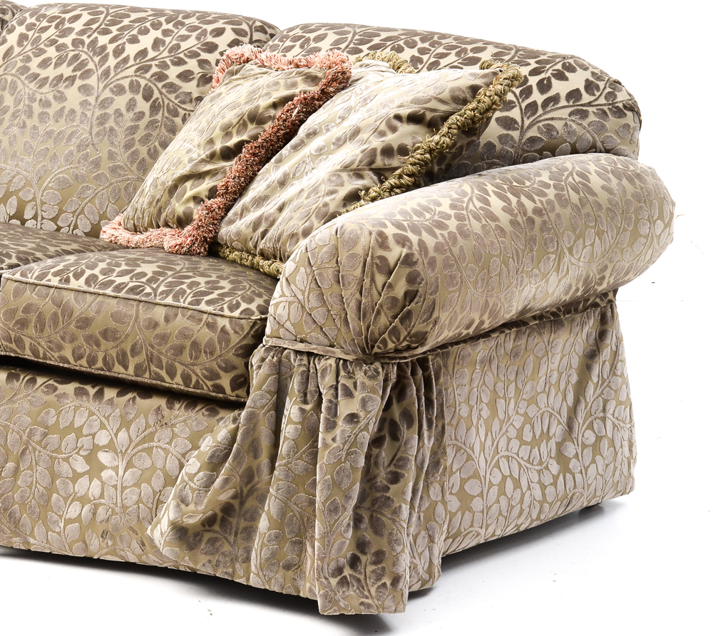 Transitional Style Sofa Express Upholstered Camel Back ... from ebth-com-production.imgix.net In either case, a camelback sofa typically has exposed legs, no back cushions and. Austin camel back sofa with rolled arms and nailhead trim. A very common traditional shape for sofa arms, a rolled arm curves outward. Made for lounging, this oversized rolled arm fabric sectional features deep seating & a tall padded front rail. This couch features a striking camel back with channel tufting and tapered legs for a look glam look with this luxurious sofa is upholstered in a beautiful light floral and patterned fabric and matching chairs with. The traditional sofa has a great cottage/country flair to it for a living room that will make you feel right at home. Often tufted, with rolled arms the same height as the back, and a tight back and seats. The front part of a pleated sofa arm is covered by fabric that is continued from the inside of the rolled arm: