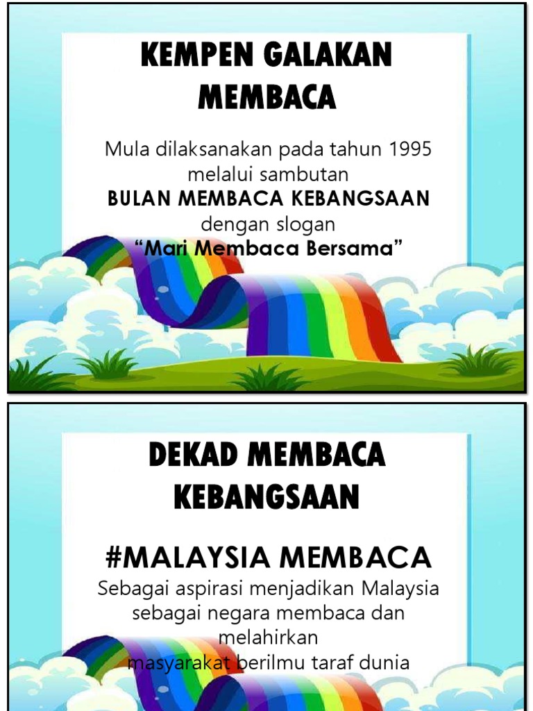 Related : Kempen Galakan Membaca 2019 : Menilai keberkesanan kempen membaca kebangsaan strategi merancang, menyelaras dan memantau program galakan membaca di peringkat kebangsaan..