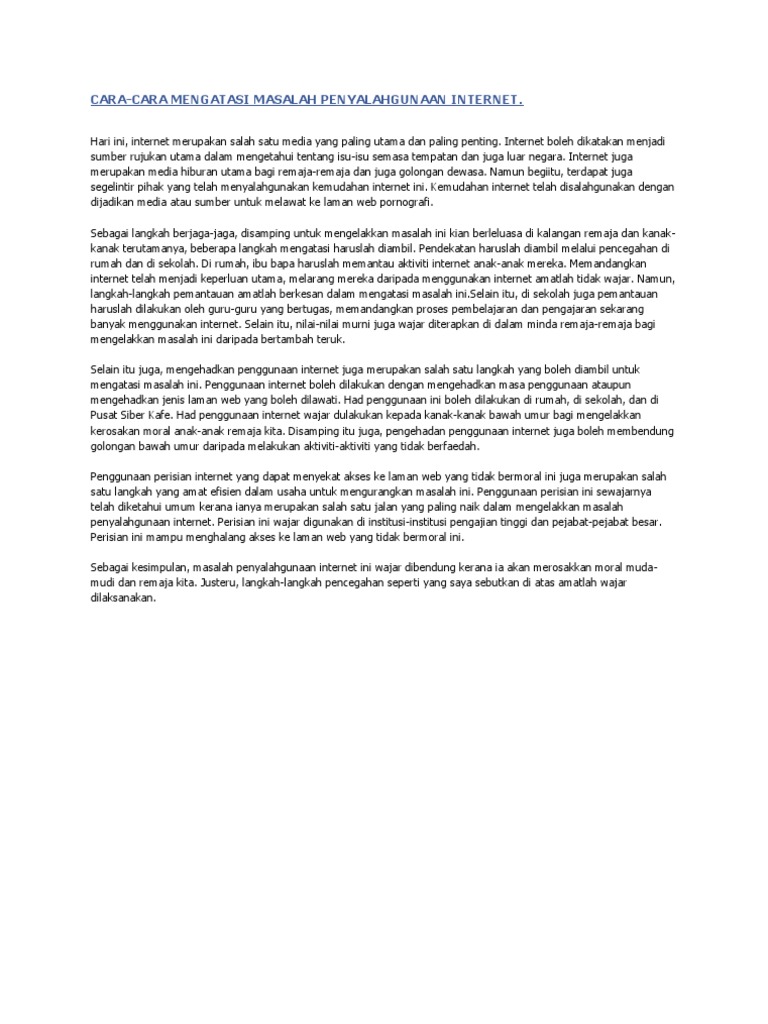 Peranan ibu bapa sangat penting untuk menangani masalah ini. Pemuda harapan bangsa, pemudi tiang negara. Sebesar 96 persen di pengguna internet di indonesia sudah menggunakan smartphone sementara 5,3 persen masih mengakses internet menggunakan ponsel fitur. Bila jadi ibu bapa ni banyak cabarannya, seperti masa, duit dan banyak lagi. Contoh karangan apakah peranan ibu bapa dalam usaha mengawal penggunaan internet anak mereka.